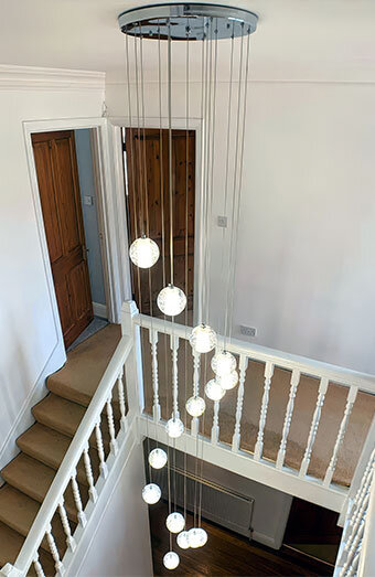 Professional installation of all lighting types including pendant lights, downlights, oyster lights, track lighting, and chandeliers for homes and businesses.